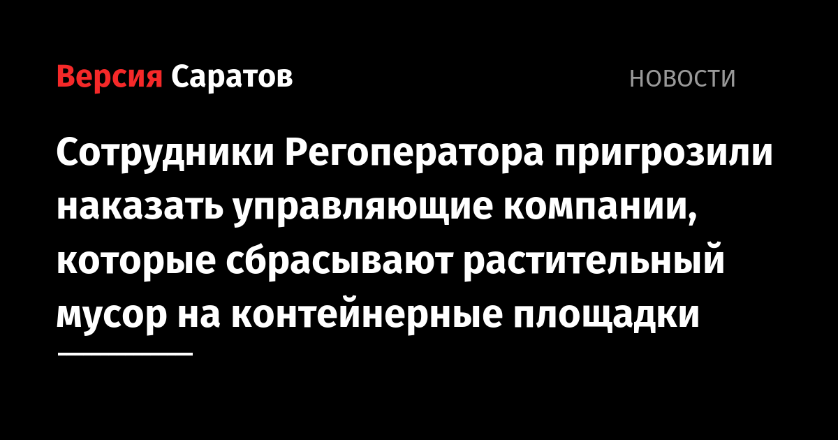 Региональный оператор напоминает, что в соответствии с приказом министерства природных ресурсов и экологии Саратовской области № 48 от 7 февраля 2022 года «Об утверждении Порядка накопления ТКО (в том числе их раздельного накопления) на территории Саратовской области» и правилами благоустройства растительные отходы нельзя оставлять на контейнерных площадках для ТКО. Управляющие организации обязаны самостоятельно обеспечить их вывоз, затраты на это предусмотрены в рамках статьи на содержание жилья. В отношении компаний, которые будут подбрасывать опиленные ветки на площадки, регоператор будет инициировать проверки, вплоть до привлечения виновных к административной ответственности. Этому в настоящее время способствуют камеры видеонаблюдения, которые устанавливаются на контейнерных площадках.