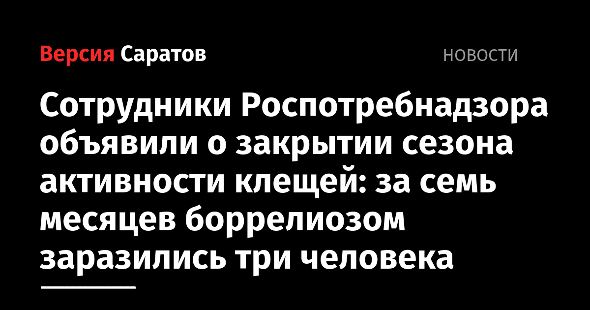 Специалисты отмечают, что три жителя Саратовской области заразились клещевым боррелиозом. Всего в лаборатории исследовали 1500 клещей, выявлено 10 проб, которые дали положительный результат на боррелиоз.