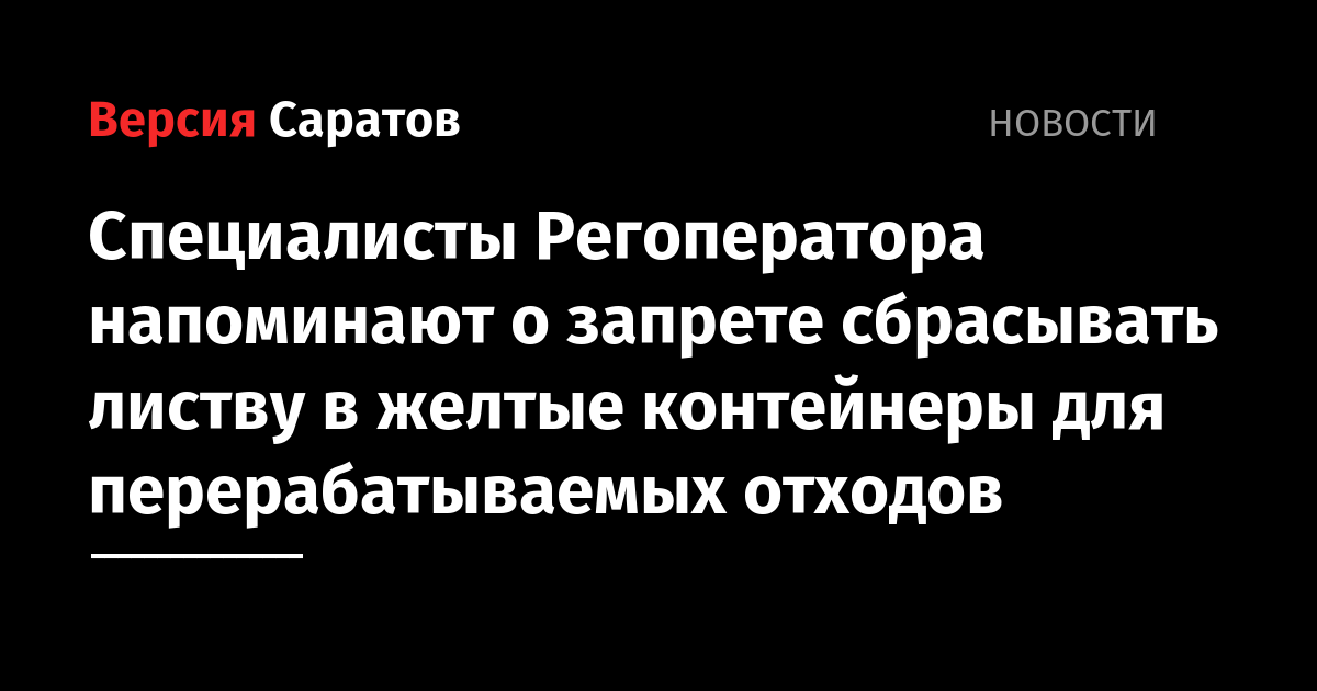 Саратовский филиал АО «Ситиматик» призывает управляющие организации и участников субботников не складировать собранный смет в желтые контейнеры для перерабатываемых отходов. С осенним листопадом доля растительных отходов в контейнерах для РСО существенно выросла, при этом смет возможно складировать в серые контейнеры или бункеры для КГО, что не нарушит морфологию раздельно собранных отходов.
