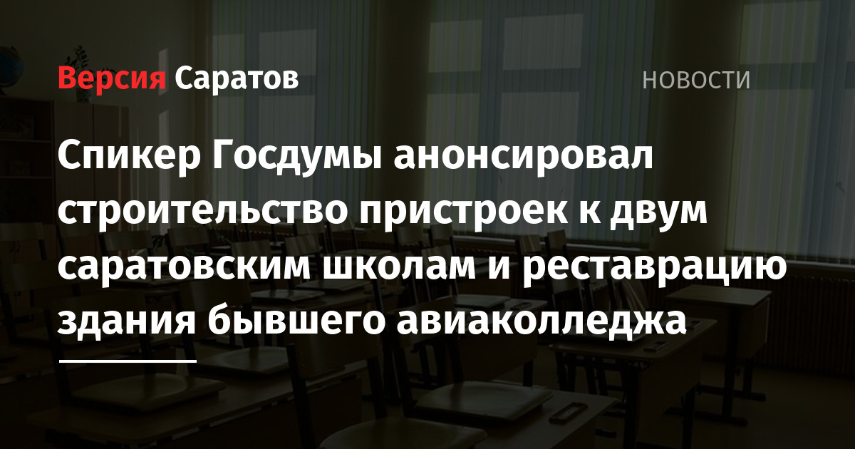 Спикер Госдумы анонсировал строительство пристроек к двум саратовским школам и реставрацию здания бывшего авиаколледжа