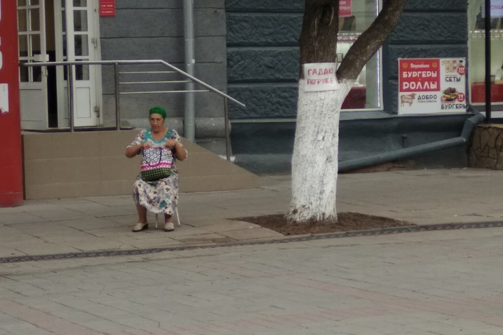 «На проспекте Кирова уже много лет орудует гадалка. Женщина приходит с табуреткой, привязывает к дереву табличку «Гадаю по руке» и садится напротив «Макдональдса». Я часто прохожу мимо и вижу, как доверчивые женщины подходят к ней и платят за «гадание». Сколько она выманивает за свои «услуги», неизвестно.