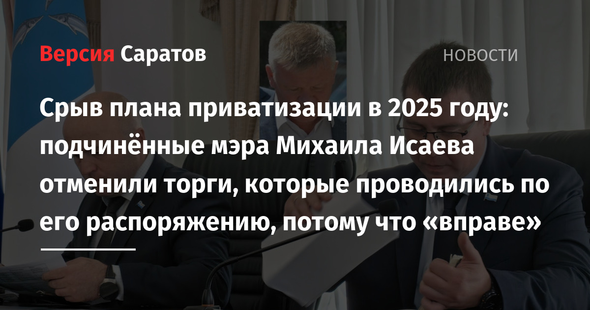 То есть, имущество, которое продаётся в рамках исполнения плана приватизации на 2025 год, что чёрным по белому прописано в распоряжениях мэра, теперь на основании этих же распоряжений будет реализовываться в следующем году. Соответственно, вопросы тут теперь возникают не только к провалу плана приватизации командой Исаева, но и к законности намеченной уже на 2026 год продажи объектов.