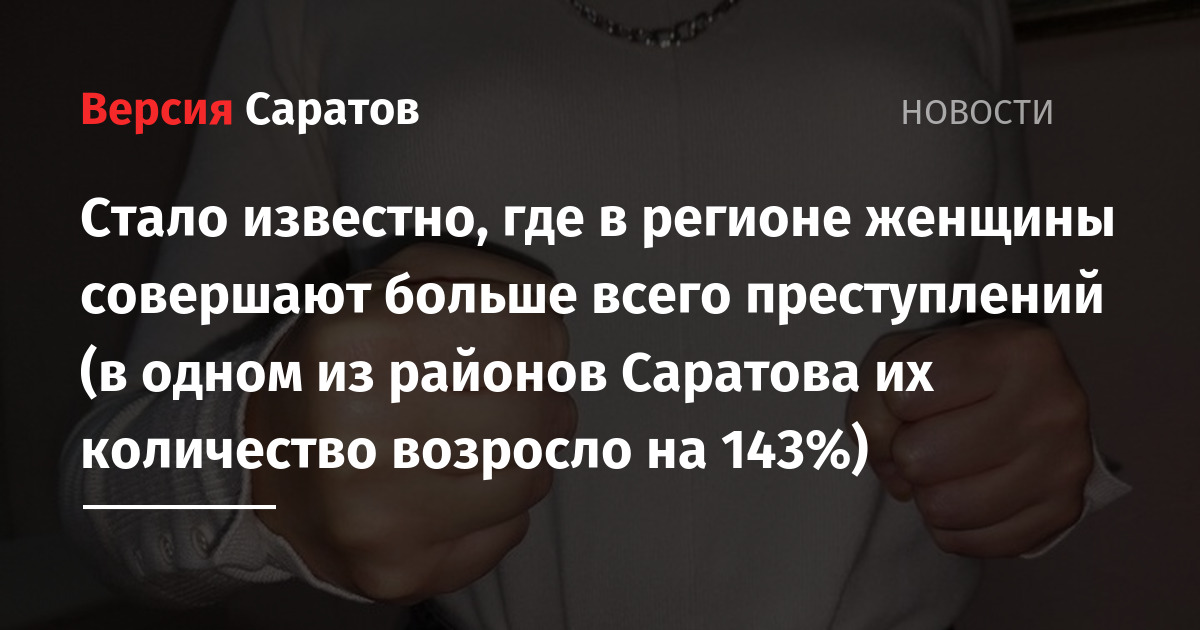 Наибольший рост преступлений, совершённых женщинами, в областном центре отмечен в Октябрьском районе — на 143,9% (с 114 до 278). По районам области: в Марксовском — на 160,9% (с 23 до 60), Вольском — на 88,6% (с 70 до 132), Аркадакском — на 85% (с 20 до 37), Озинском — на 76,9% (с 13 до 23), Базарно-Карабулакском — на 62,1% (с 29 до 47).