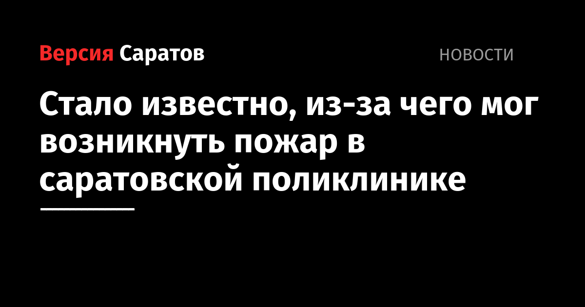 Сегодня, 4 июля, мы поинтересовались, из-за чего возник пожар в медучреждении. В пресс-службе ГУ МЧС ИА «Версия-Саратов» рассказали, что сейчас рассматриваются все версии, но одна из наиболее вероятных — аварийная работа электрооборудования на посту охраны.