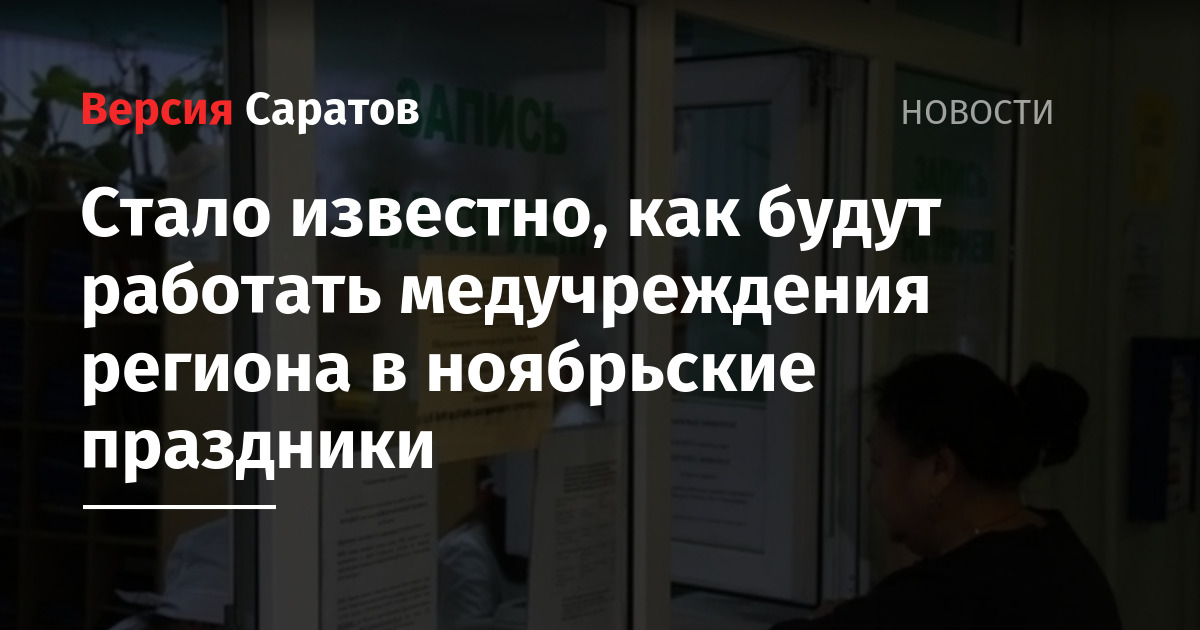 Стало известно, как будут работать медучреждения Саратовской области в предстоящие праздники. Информацию опубликовал региональный минздрав.