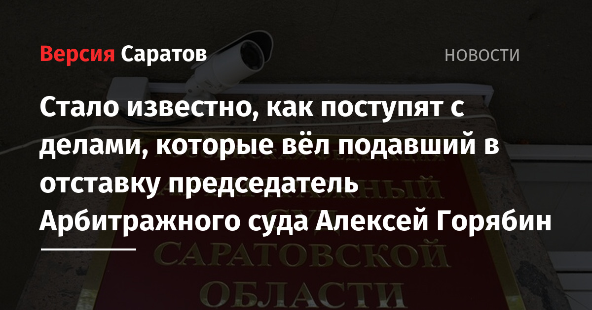 Председателя Арбитражного суда Саратовской области Алексея Горябина заменят, а его дела будут переданы другому судье. Об ИА «Версия-Саратов» сообщили в пресс-службе инстанции.