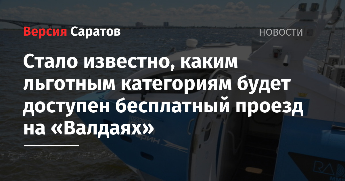 - Проезд на «Валдаях» в Саратовской области для некоторых граждан станет бесплатным