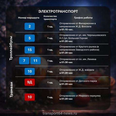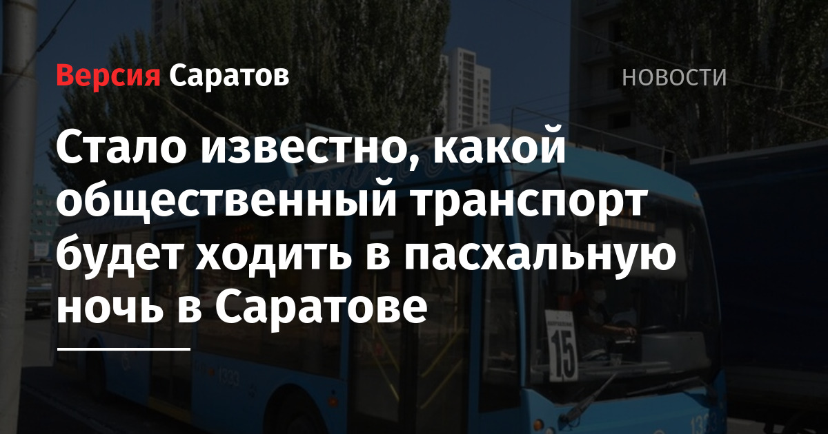 Стало известно, какой общественный транспорт в Саратове будет ходить в пасхальную ночь. Информацию опубликовали в Telegram-канале «Транспортный Саратов».