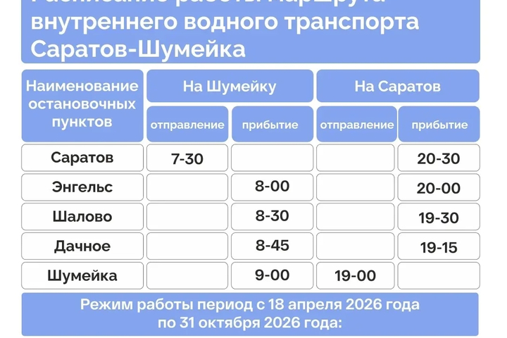 - Стали известны сроки и расписание работы трех речных маршрутов в регионе