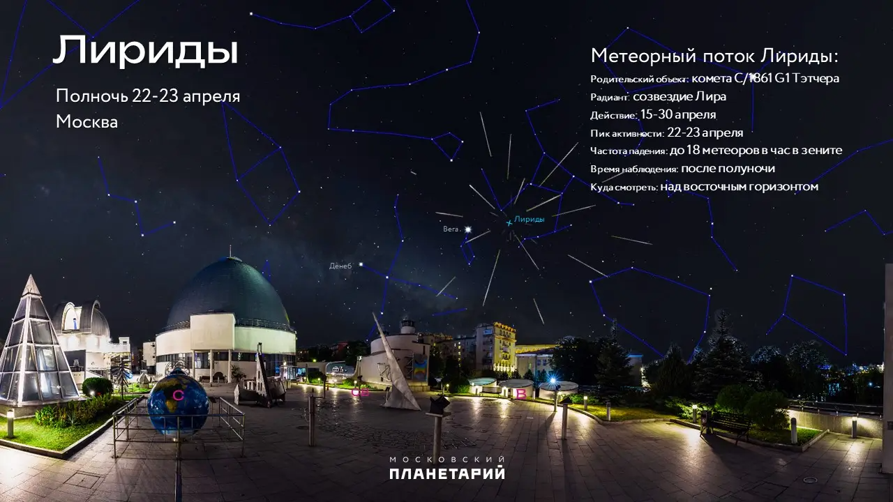 Специалисты Московского планетария рассказали, когда можно будет увидеть первый весенний метеорный поток. Лириды будут активны с 16 по 30 апреля.