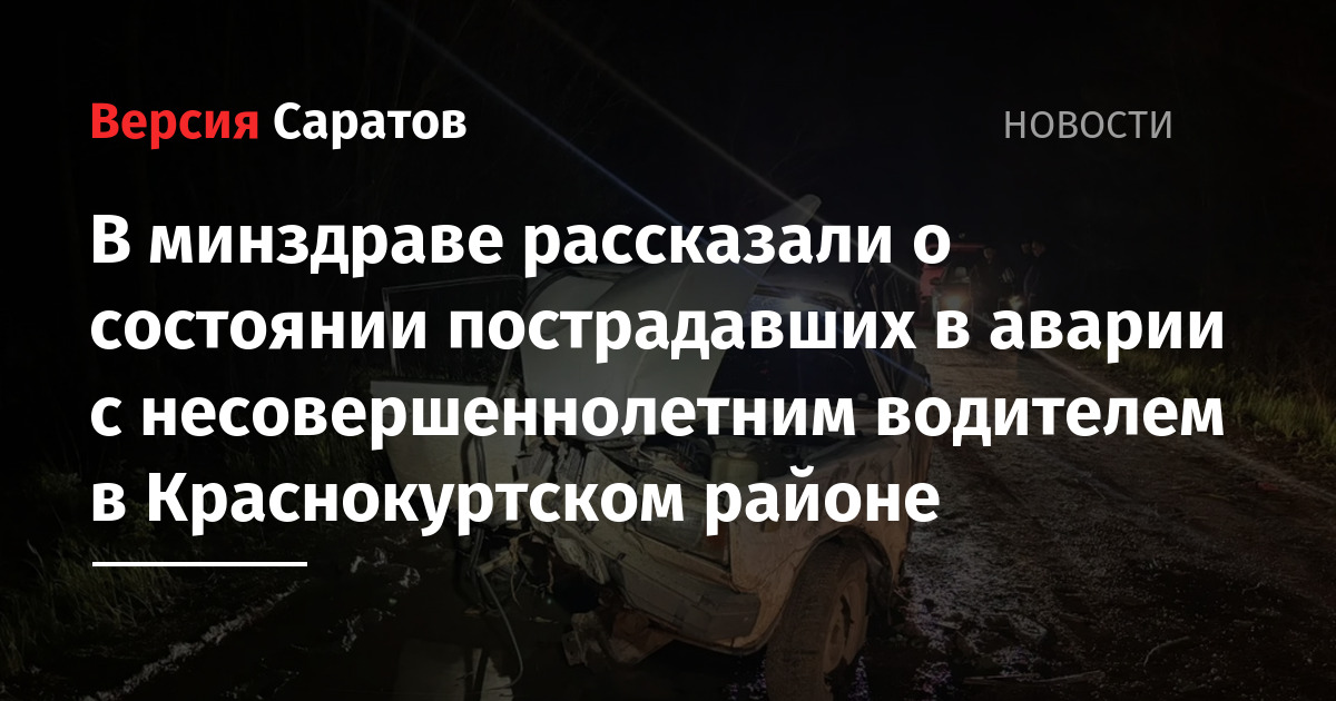 Напомним, авария случилась вчера, 26 апреля. «На дороге Красный Кут — село Пшеничное несовершеннолетний водитель не справился с управлением и наехал на дерево, после чего машина опрокинулась. Водитель и пассажиры госпитализированы в медицинское учреждение с травмами разной степени тяжести», — рассказали ранее в прокуратуре. Как уточнили в региональном УГИБДД, пострадали водитель и пять пассажиров.