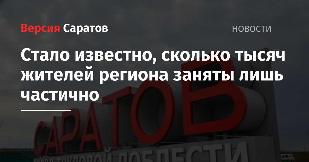 По величине доли частично занятых работников Саратовская область занимает 42-е место в стране. По информации экспертов, в регионе неполная занятость распространяется на 15,4% работающих людей. В абсолютных цифрах — это 72,5 тысячи человек. За год численность выросла на 10,6% или на 7 тысяч человек.