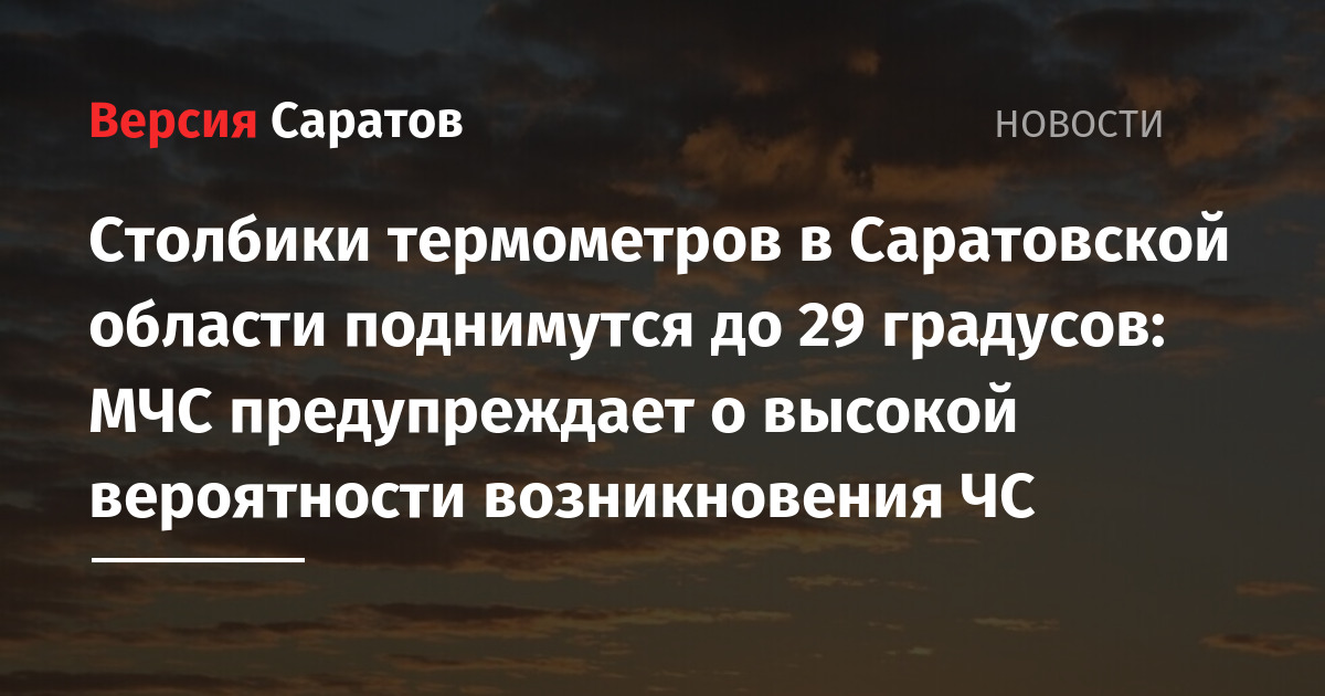 В связи с жаркой погодой ГУ МЧС выпустило экстренное предупреждение о высокой степени вероятности возникновения ЧС. Оно связано с тем, что с 20 по 25 апреля в Саратовской области ожидается высокая пожарная опасность четвёртого класса. В регионе объявлен жёлтый уровень погодной опасности.