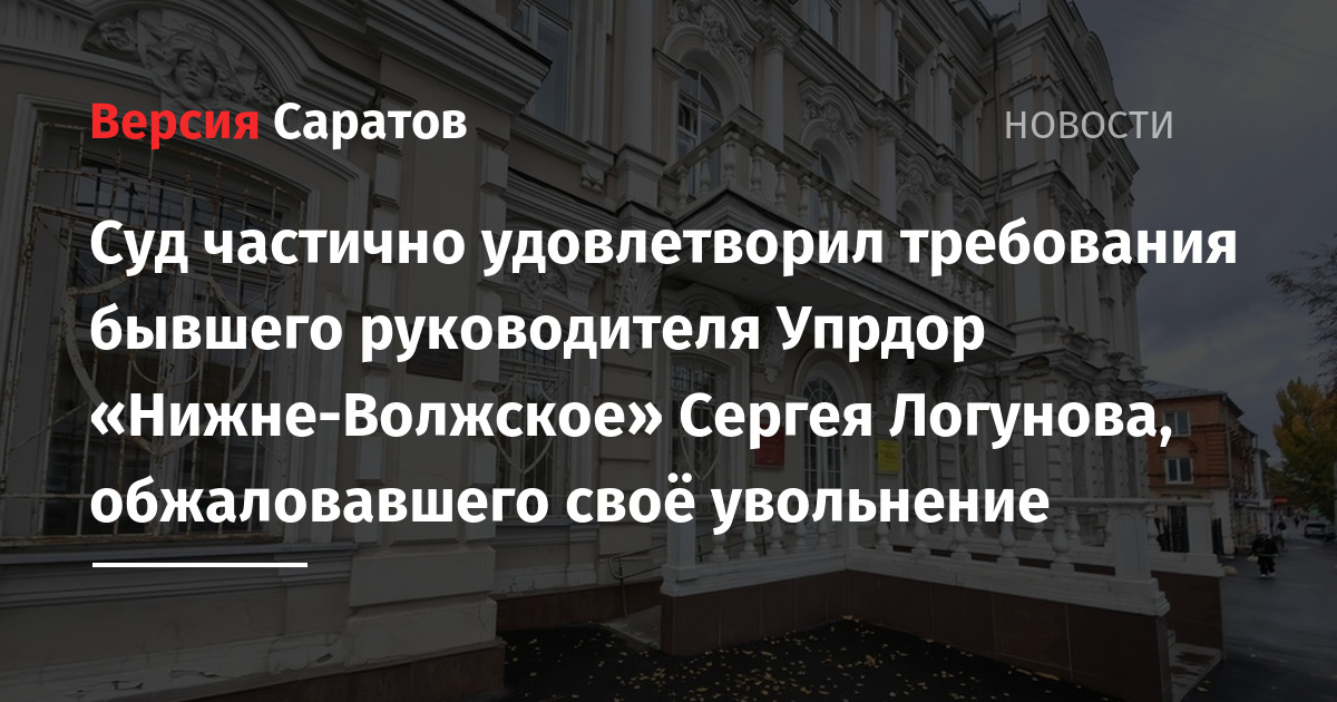 Суд частично удовлетворил требования бывшего руководителя Упрдор «Нижне-Волжское» Сергея Логунова, обжаловавшего своё увольнение