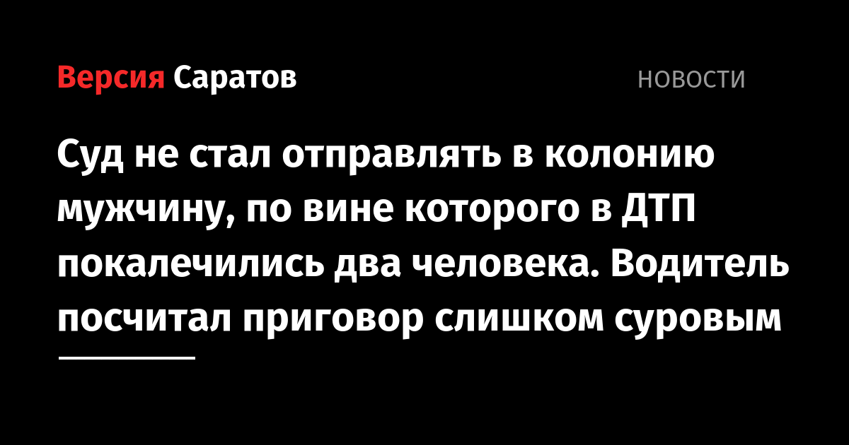 Суд не стал отправлять в колонию мужчину, по вине которого в ДТП покалечились два человека. Водитель посчитал приговор слишком суровым