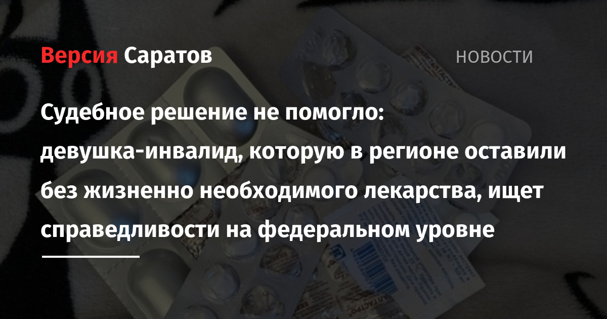 Девушка-инвалид проживает в Балаково. По решению врачебной комиссии ей должны бесплатно выдавать жизненно необходимый препарат. Однако в прошлом году лекарство выдавали с перебоями, а с апреля нынешнего года и вовсе перестали выдавать. Не помогло даже то, что у заявительницы есть решение суда, обязывающее обеспечивать ее медикаментом.
