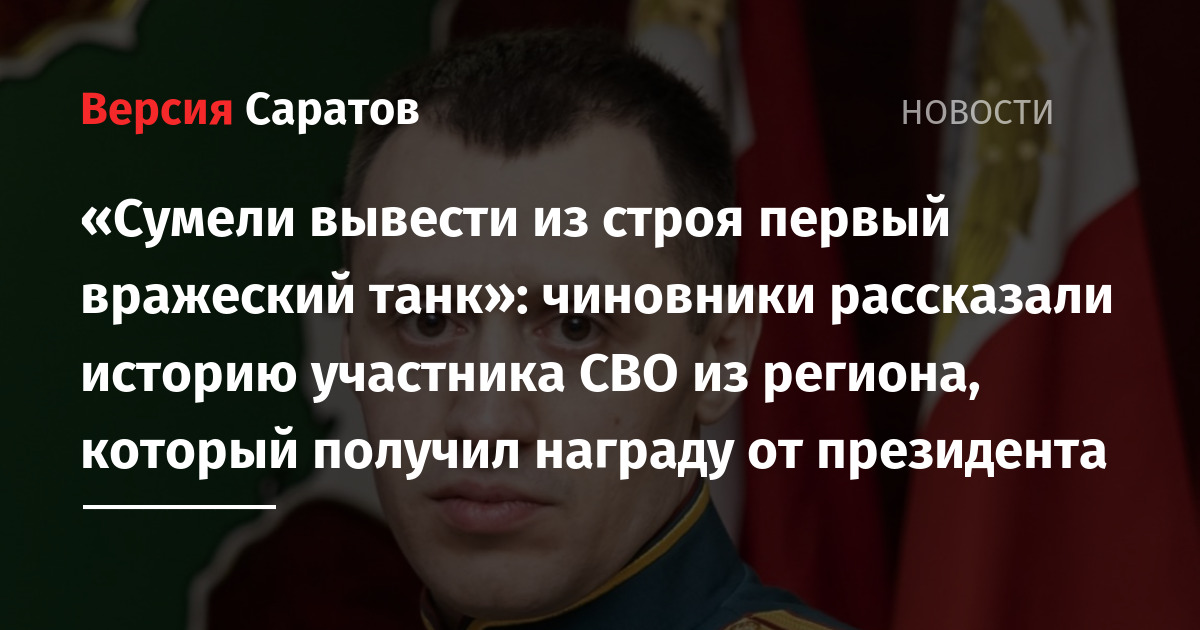 Чиновники рассказали историю участника СВО из Саратовской области, который получил награду от президента Владимира Путина. Информацию о майоре Андрее Филоненко опубликовали в Telegram-канале «Время Саратовское».