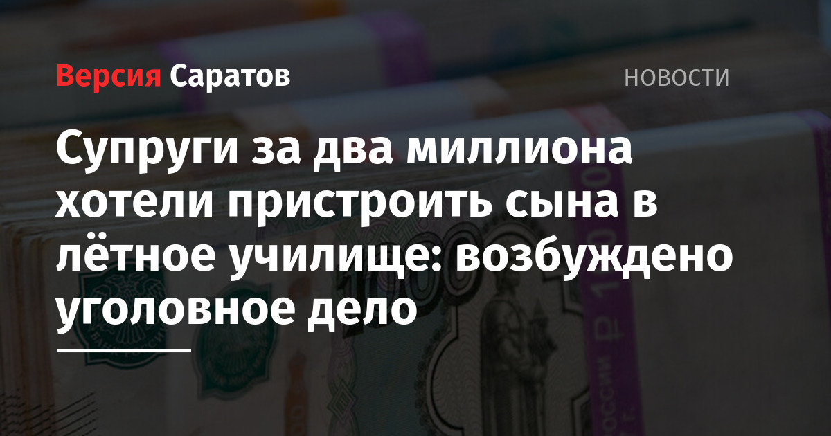 В Саратовской области возбудили уголовное дело в отношении супружеской пары — 55-летнего мужчины и 39-летней женщины. Как рассказали в региональном СУ СК, их подозревают в покушении на взятку в особо крупном размере (ч.3 ч.30 — ч.5 ст. 291 УК РФ).