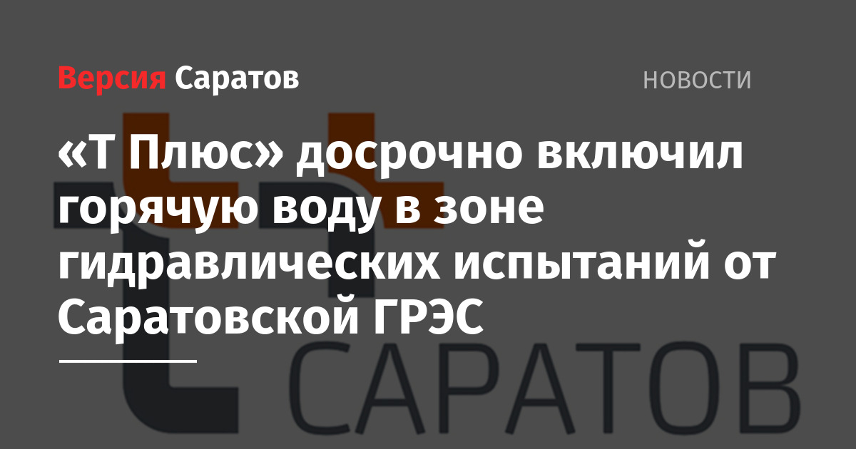 «Т Плюс» досрочно включил горячую воду в зоне гидравлических испытаний от Саратовской ГРЭС