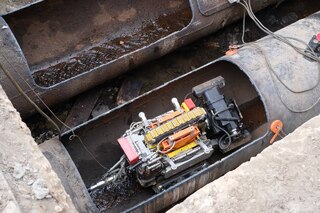 Робот способен проводить диагностику при температуре от -5 до +45 градусов и проходить через трубы диаметром от 500 до 1200 мм. Его преимущество — возможность обследовать участки теплотрассы без предварительной подготовки и вскрытия грунта, что минимизирует неудобства для горожан и автомобилистов. Проверка трубопроводов с помощью робота не заменяет традиционную диагностику повышенным давлением, а дополняет её.