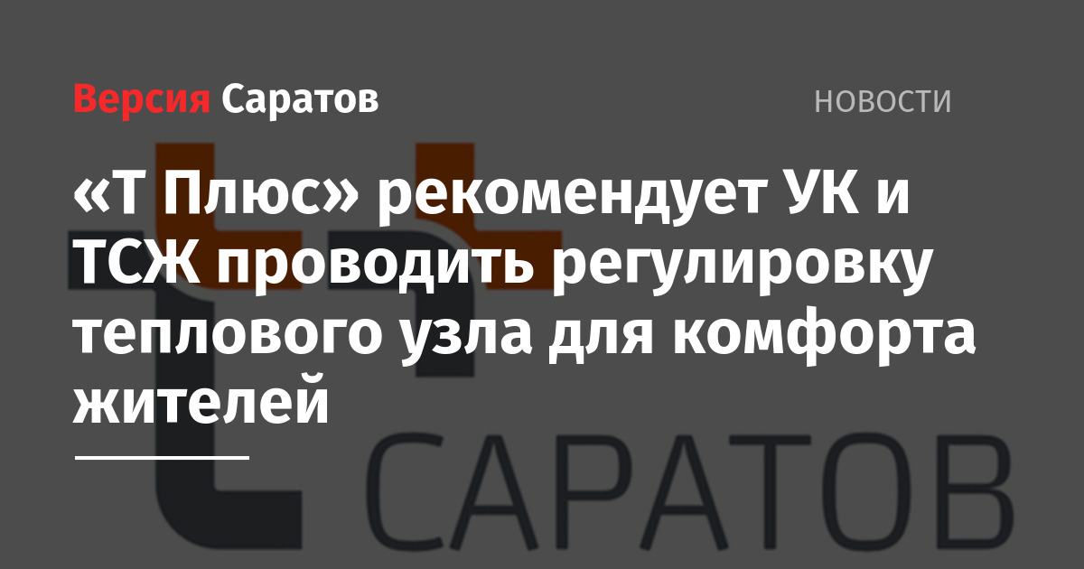 «Т Плюс» рекомендует УК и ТСЖ проводить регулировку теплового узла для комфорта жителей
