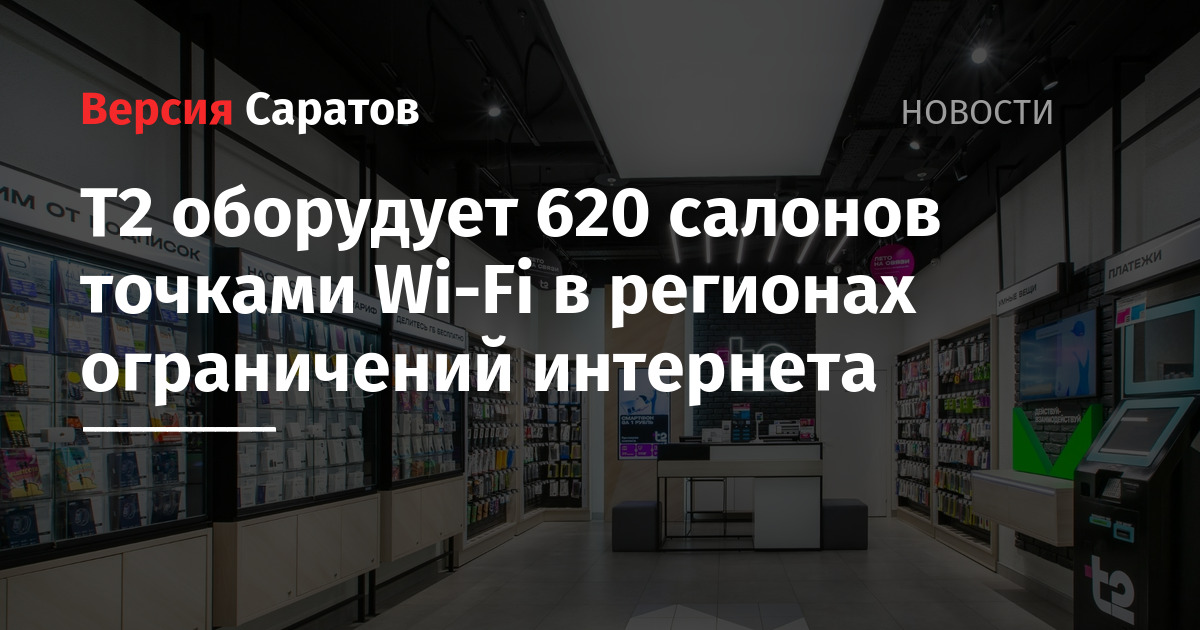 Т2 оборудует 620 салонов точками Wi-Fi в регионах ограничений интернета
