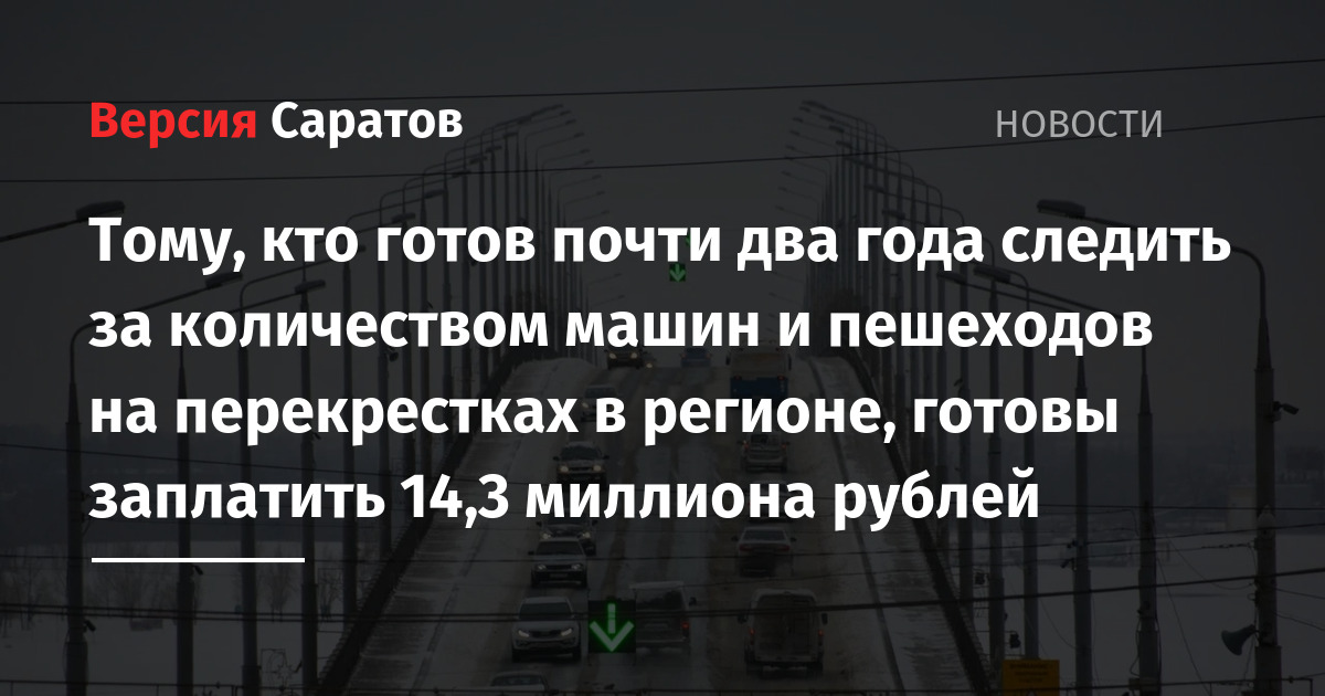 Тому, кто готов почти два года следить за количеством машин и пешеходов на перекрестках в регионе, готовы заплатить 14,3 миллиона рублей