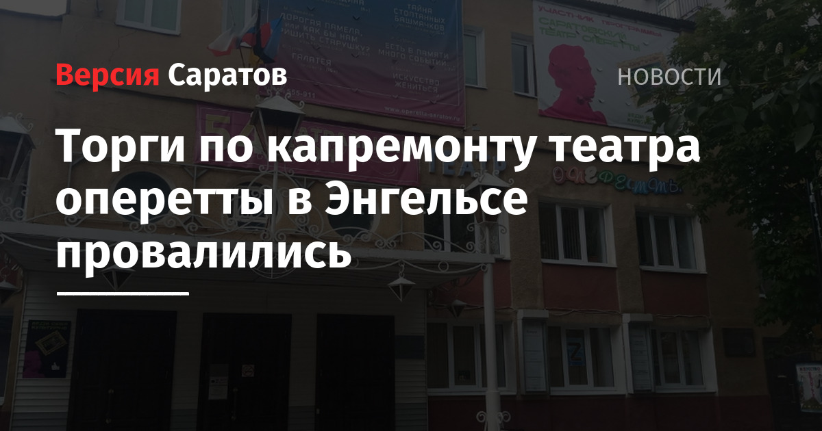 В Энгельсе провалились торги по капитальному ремонту здания ГАУК «Саратовский областной театр оперетты» на улице Театральная. Заказчиком выступало ГКУ «Управление капитального строительства», стоимость ремонта была оценена в 624,9 миллиона рублей.