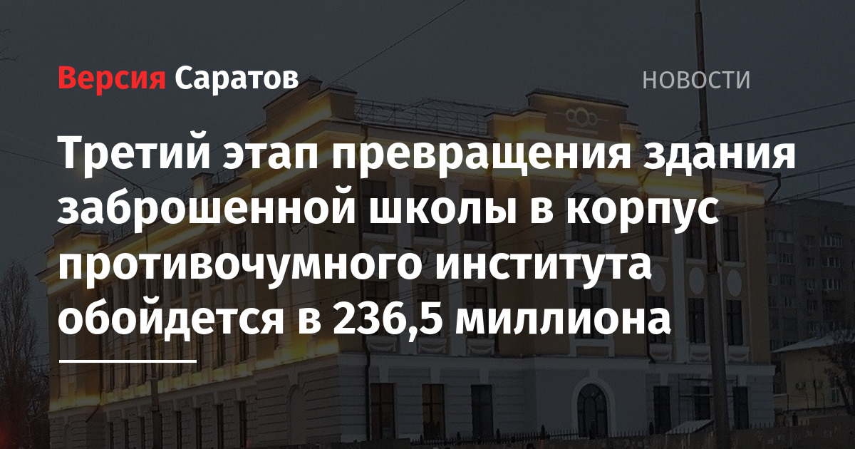 Напомним, власти предпринимали неоднократные и безуспешные попытки продать здание. В 2022 году его передали противочумному институту «Микроб». Там решили открыть учебный центр биологической безопасности. Позже стало известно, что в здании планируется создать научно-образовательный консорциум «Будущее биологии и медицины». В октябре 2023 году объявили аукцион на первый этап реконструкции здания почти за 380 миллионов рублей. Несмотря на внушительную цену, никто не захотел в нем участвовать. Позже были объявлены новые торги. Подрядчиком стало ООО «Эверест-Си». На втором этапе реконструкции в 2025 году в ремонт вложили еще 145,5 миллиона рублей.