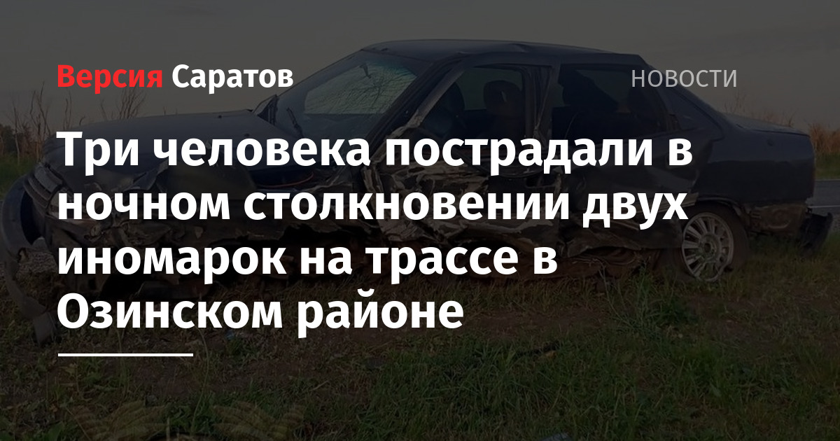 Сегодня, 14 июня, в Озинском районе Саратовской области произошла авария, в результате которой пострадали три человека. ДТП случилось в 3:00 на 557-м километре федеральной трассы Тамбов-Пенза-Озинки-граница с Казахстаном.