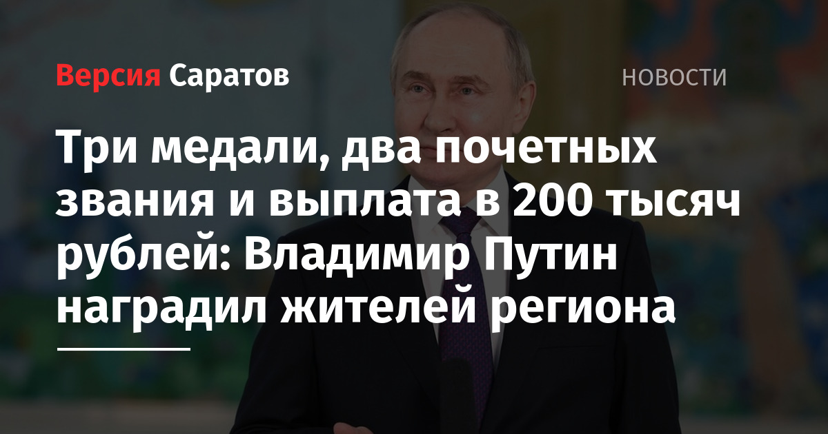 На официальном портале правовой информации опубликован президентский указ «О награждении государственными наградами». Его глава государства Владимир Путин подписал вчера. Документ занимает 31 страницу и в нем, помимо прочих, упоминаются жители Саратовской области.