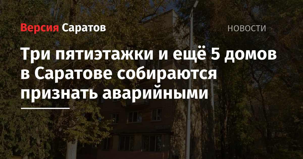 В Саратове ещё 8 домов в ближайшее время могут признать аварийными. Завтра, 24 октября, вопрос будет обсуждаться на заседании межведомственной комиссии при комитете по ЖКХ, которая дает рекомендации о признании домов аварийными.