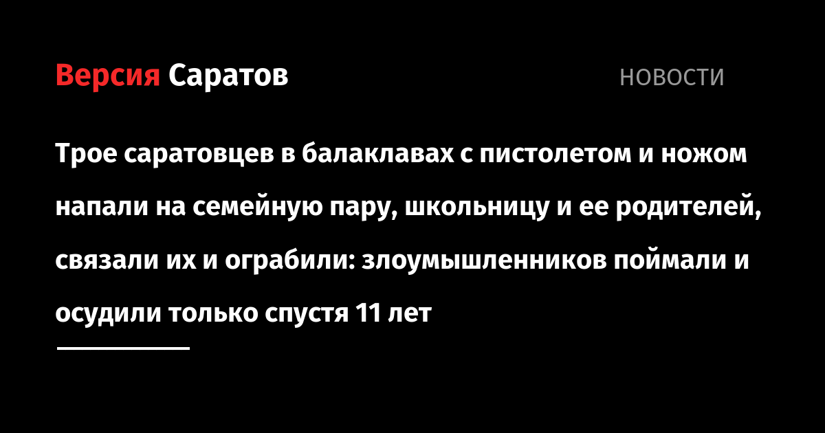 Трое саратовцев в балаклавах с пистолетом и ножом напали на семейную пару, школьницу и ее родителей, связали их и ограбили: злоумышленников поймали и осудили только спустя 11 лет