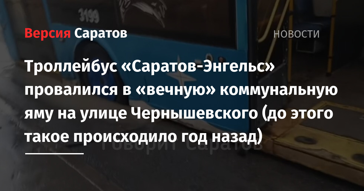 Коммунальное ЧП произошло на углу улиц Чернышевского и Московская. «Троллейбус провалился в вечный саратовский провал. Этот участок ремонтировался не раз, но стойкого результата ремонтных работ так и нет. Чернышевского / угол Московской продолжает проваливаться в преисподнюю Провал остаётся достопримечательностью», — говорится в публикации.