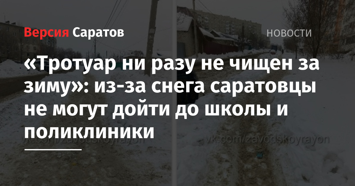 В Комсомольском посёлке в Заводском районе Саратова плохо убирают снег. Пост с такой жалобой появился в группе «Заводской Online Саратов» в соцсети «ВКонтакте».