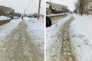 «5-й Крекингский проезд. Тротуар ни разу не чищен за зиму. Дорога ведёт к школе, садикам, поликлинике. Все обращения жителей игнорируются», — говорится в посте.