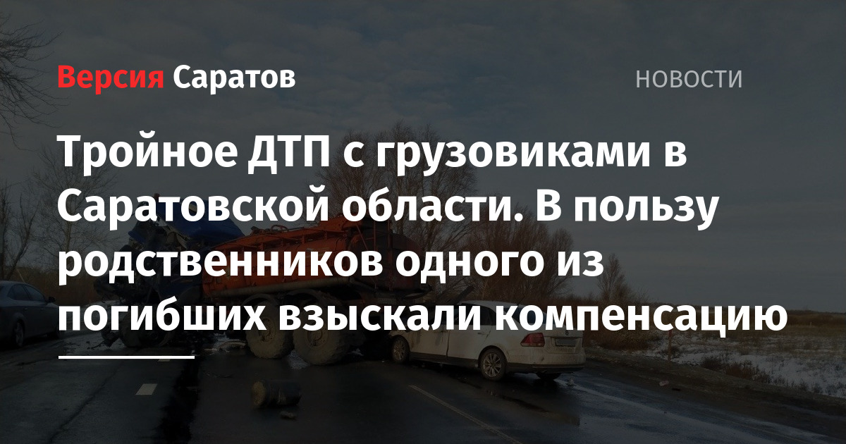Тройное ДТП с грузовиками в Саратовской области. В пользу родственников одного из погибших взыскали компенсацию