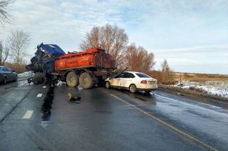 Как теперь рассказали в УФССП, мужчина, управляя автомобилем с цистерной, принадлежащим юридическому лицу, которое специализирующемуся на торговле топливом, выехал на встречную полосу, где столкнулся с грузовиком.