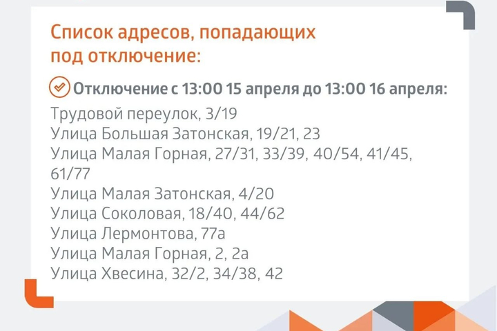 Сегодня для проведения аварийных работ на Большой Горной, 137, до полуночи отключили холодную воду по адресам: