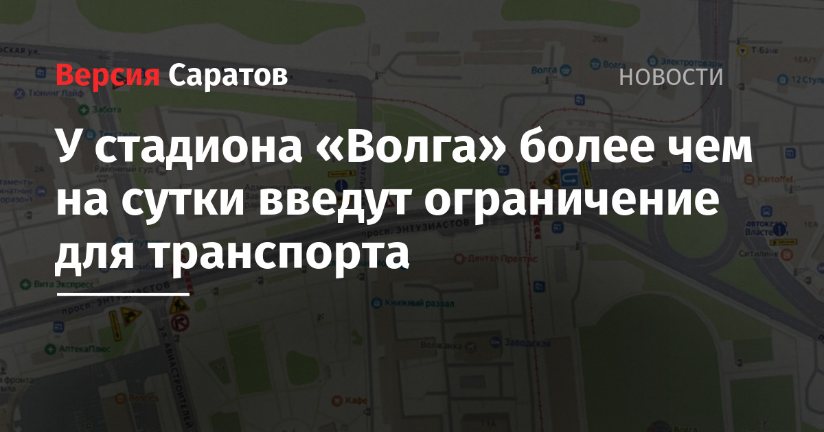 В Саратове более чем на сутки перекроют движение у стадиона «Волга». Об этом сообщили в Telegram-канале «Саратов транспортный».
