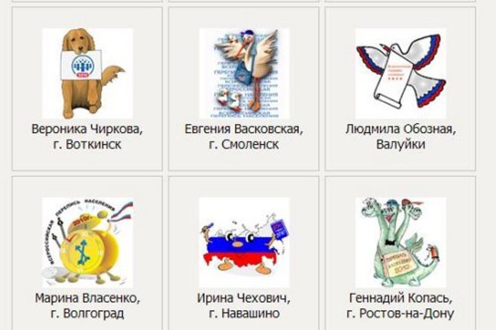 Жюри, в состав которого входили представители Росстата и газеты «Комсомольская правда», выбрали талисман грядущей переписи населения. Им стал улыбающийся кудрявый мальчик, нарисованной художником-любителем из Ярославля Ольгой Беляевой.