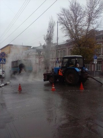 Коммунальщики устраняют аварию напротив здания правительства Саратовской области. Как сообщают горожане, из колодца на улице Горького идет пар. В настоящее время специалисты откачивают из него воду.
