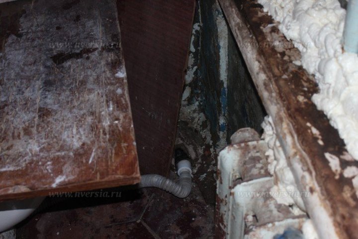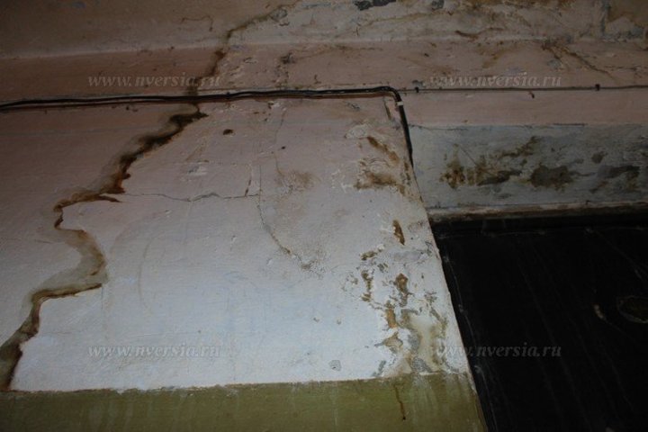 Собеседница издания, которая представилась Еленой Емелиной, рассказала, что угол у дома обрушился в начале 2014 года: "Через год его просто подперли железной балкой. Страшно жить, но куда деваться. В туалет ходить опасно, там уже весь угол рухнул. Каждый раз, когда заходим в ванну, то боимся, что обвалится стена и полы. С крыши течет и из трубы тоже. Под вечер на полу образуются лужи из-за дырявых труб. В доме живут дети и пожилые люди, ложимся спать и боимся, что проснемся от того, что на нас обрушатся стены".