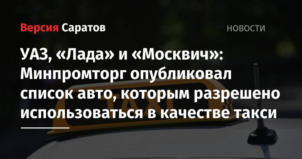 УАЗ, «Лада» и «Москвич»: Минпромторг опубликовал список авто, которым разрешено использоваться в качестве такси
