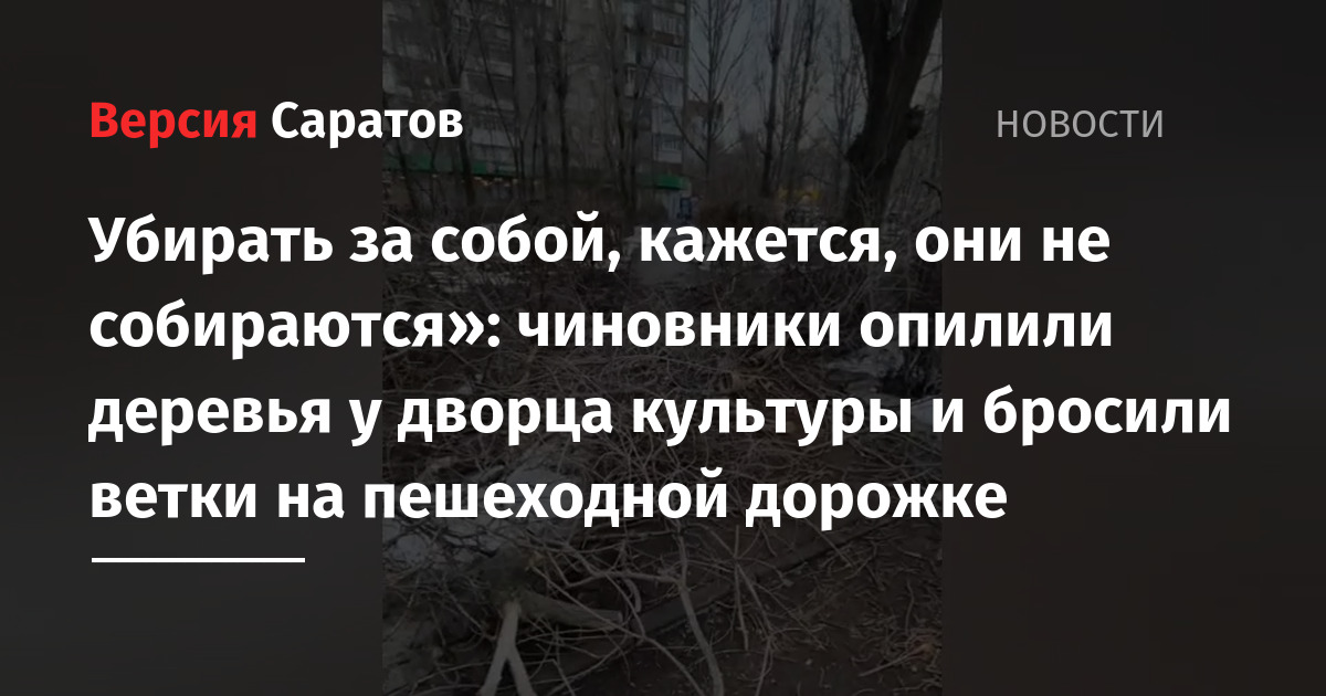 В Ленинском районе Саратова (глава — Артем Курочкин) чиновники не спешат убирать ветви опиленных деревьев. Об этом рассказала подписчица Telegram-канала «Говорит Саратов» Ирина.