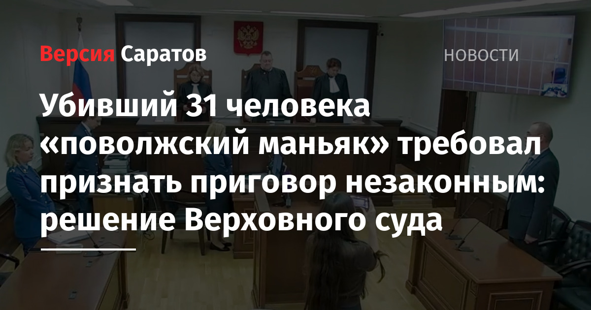 Верховный суд России рассмотрел кассационную жалобу на приговор жителю Казани Радику Тагирову. Последнего также называют «поволжским маньяком». Он убивал в основном пожилых женщин в разных регионах Поволжья, в том числе и в Саратовской области.