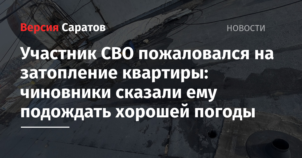 Проживающий в Кировском районе Саратова (глава Андрей Марусов) участник СВО пожаловался, что его квартиру со свежим ремонтом затапливает из-за проблем с крышей дома. Саратовец рассказал о своей проблеме в чате районной администрации в Telegram.
