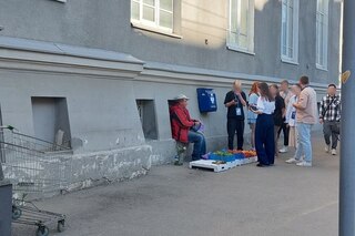 Как видно на фото, с местным колоритом захотели поближе познакомиться молодые люди, участвующие в XXXII Всероссийском фестивале «Российская студенческая весна». Фрукты, которыми торгуют с земли, их явно заинтересовали. Возможно, в своих городах они такой картины возле важных госучреждений наблюдать не могли.