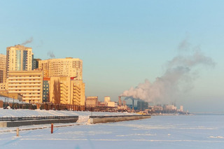 Над городом наблюдается температурная инверсия. Обычно температура падает с высотой, но сейчас всё наоборот: у земли -25, а на уровне девятиэтажек уже может быть -20 градусов или даже теплее. На высоте 1,5 километров — всего -14 градусов. Холодный, тяжёлый воздух прижат к земле, а над ним слой потеплее, как «крышка».