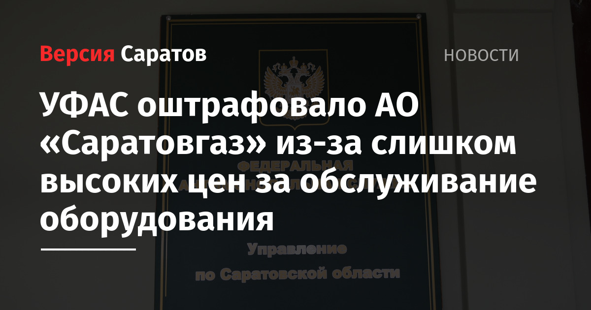 УФАС оштрафовало АО «Саратовгаз» из-за слишком высоких цен за обслуживание оборудования